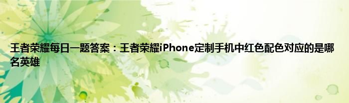 以上就是王者荣耀每日一题答案:王者荣耀iPhone定制手机中红色配色对应的是哪名英雄的推荐,相信通过王者荣耀每日一题答案:王者荣耀iPhone定制手机中红色配色对应的是哪名英雄这篇文章能帮到你,也欢迎对游戏很感兴趣小伙伴们一起来探讨。