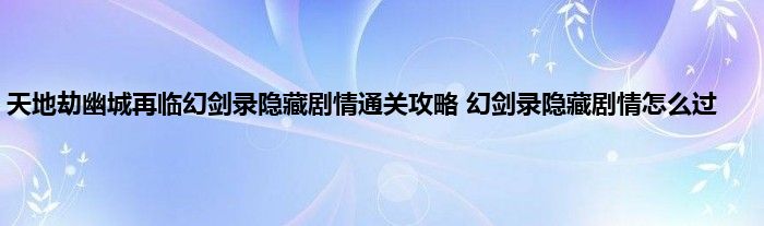 乾坤劫幽城幻剑录隐藏剧情怎么过