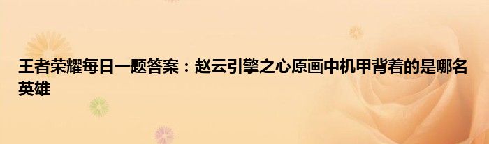 以上就是王者荣耀每日一题答案:赵云引擎之心原画中机甲背着的是哪名英雄的推荐,相信通过王者荣耀每日一题答案:赵云引擎之心原画中机甲背着的是哪名英雄这篇文章能帮到你,也欢迎对游戏很感兴趣小伙伴们一起来探讨。