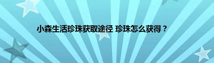 小森生活珍珠怎么获得