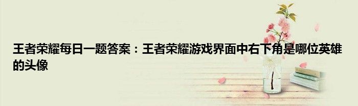 以上就是王者荣耀每日一题答案:王者荣耀游戏界面中右下角是哪位英雄的头像的推荐,相信通过王者荣耀每日一题答案:王者荣耀游戏界面中右下角是哪位英雄的头像这篇文章能帮到你,也欢迎对游戏很感兴趣小伙伴们一起来探讨。