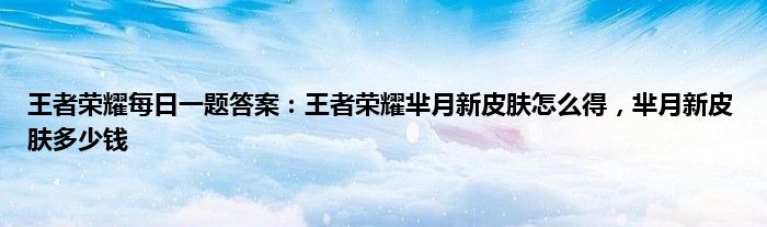 问:王者荣耀芈月新皮肤怎么得?芈月新皮肤多少钱?