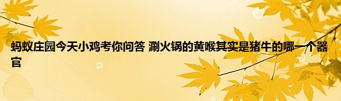 蚂蚁庄园今天小鸡考你问答,涮火锅的黄喉其实是猪牛的哪一个器官,欢迎大家来到这里,能进来的小伙伴都有玩蚂蚁庄园的,支付宝蚂蚁庄园每天都会在小课堂更新一道题目,答对即可领取小鸡饲料180G,4月26日蚂蚁庄园问题是:涮火锅的黄喉,其实是猪牛的哪一个器官?很多小伙伴都不知道涮火锅的黄喉,其实是猪牛的哪一个器官这个问题的答案是什么,那么小编就为大家分享下4月26日蚂蚁庄园课题问题的答案,希望对大家有所帮助!