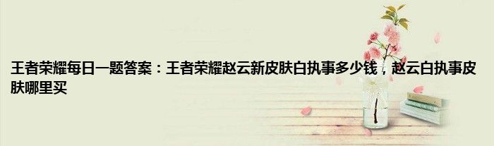 以上就是王者荣耀每日一题答案:王者荣耀赵云新皮肤白执事多少钱,赵云白执事皮肤哪里买的推荐,相信通过王者荣耀每日一题答案:王者荣耀赵云新皮肤白执事多少钱,赵云白执事皮肤哪里买这篇文章能帮到你,也欢迎对游戏很感兴趣小伙伴们一起来探讨。
