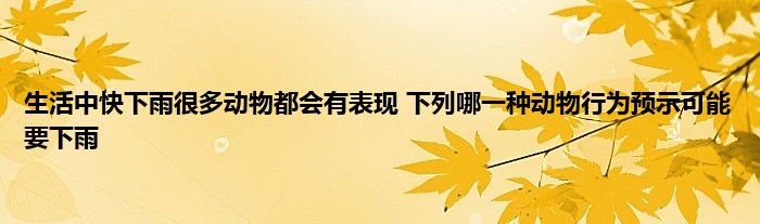 今天来聊聊一篇关于生活中很多快下雨都有前奏 下列哪一种动物行为预示可能要下雨的文章,现在就为大家来简单介绍下生活中很多快下雨都有前奏 下列哪一种动物行为预示可能要下雨,希望对各位小伙伴们有所帮助。