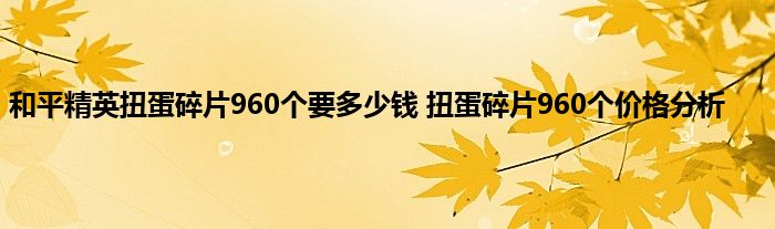 和平精英游戏中,扭蛋碎片是很重要的一个资源,那么,扭蛋碎片要多少钱?扭蛋碎片960个要多少钱?扭蛋碎片960个抽取的花费很大,下面为大家带来和平精英960个扭蛋碎片价格一览,希望可以帮助到大家。