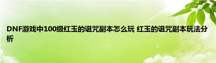 今天来聊聊关于DNF游戏中100级红玉的诅咒副本怎么玩 红玉的诅咒副本玩法分析的文章,游戏是很多人的选择,但是游戏玩多了也会身心疲惫,现在就为大家来简单介绍下DNF游戏中100级红玉的诅咒副本怎么玩 红玉的诅咒副本玩法分析,希望对各位小伙伴们有所帮助。