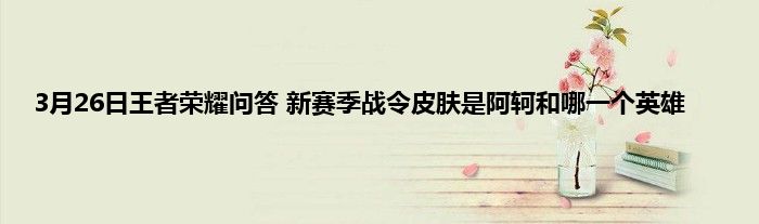 今天来聊聊关于3月26日王者荣耀问答 新赛季战令皮肤是阿轲和哪一个英雄的文章,游戏是很多人的选择,但是游戏玩多了也会身心疲惫,现在就为大家来简单介绍下3月26日王者荣耀问答 新赛季战令皮肤是阿轲和哪一个英雄,希望对各位小伙伴们有所帮助。
