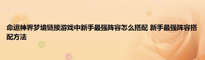 今天来聊聊关于命运神界梦境链接游戏中新手最强阵容怎么搭配 新手最强阵容搭配方法的文章,游戏是很多人的选择,但是游戏玩多了也会身心疲惫,现在就为大家来简单介绍下命运神界梦境链接游戏中新手最强阵容怎么搭配 新手最强阵容搭配方法,希望对各位小伙伴们有所帮助。