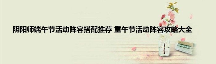 以上就是阴阳师端午节活动阵容推举全部内容。