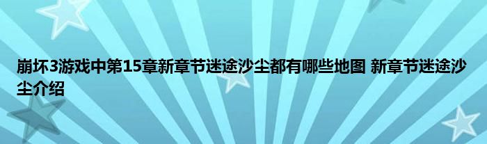 今天来聊聊关于崩坏3游戏中第15章新章节迷途沙尘都有哪些地图 新章节迷途沙尘介绍的文章,游戏是很多人的选择,但是游戏玩多了也会身心疲惫,现在就为大家来简单介绍下崩坏3游戏中第15章新章节迷途沙尘都有哪些地图 新章节迷途沙尘介绍,希望对各位小伙伴们有所帮助。