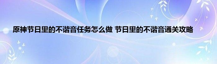 原神节日里的不谐音任务攻略