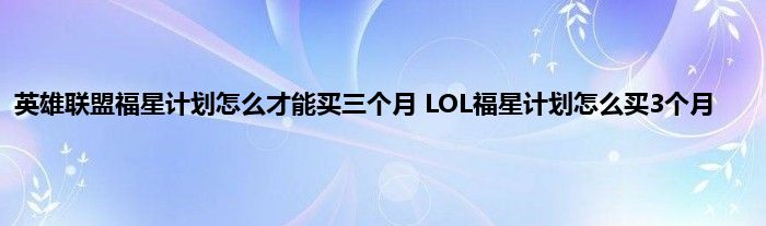 lol福星计划怎么买三个月