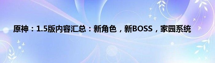 原神1.4版本今日更新,但是这次新版本内容并不多,新角色也只是一个四星角色。所以不少玩家十分期待1.5版本。目前1.5版本的内测终于开启,大佬也通过解包发现了1.5的新角色和新BOSS以及新的家园系统玩法等等,下面新一来给大家详细解答一下这备受期待的1.5版本。