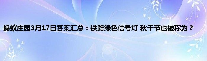 感谢你在百忙之中抽出时间阅读蚂蚁庄园3月17日答案汇总:铁路绿色信号灯 秋千节也被称为?这篇文章。你觉得今天蚂蚁庄园3月17日答案汇总:铁路绿色信号灯 秋千节也被称为?话题怎么样?关于蚂蚁庄园3月17日答案汇总:铁路绿色信号灯 秋千节也被称为?这篇文章的任何评论都可以告诉我。你的每一个建议都是对小编辑的肯定和鼓励。小编明天会继续给你带来更多的好内容。我希望你不要错过。感谢支持哟!