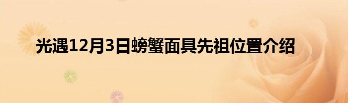 小编今天给各位玩家朋友们带来的是光遇12月3日螃蟹面具先祖位置介绍,有记得的玩家朋友吗?不记得也没有关系,小编已经帮助大家把光遇12月3日螃蟹面具先祖位置介绍找了出来,你只需要动动你的小手就可以轻松知道啦,快来瞧一瞧吧。