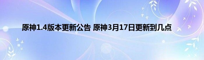 原神3月17日更新什么时候结束?原神3月17日就要上线1.4版本了,这个版本更新后有全新的内容可以体验,因此玩家们应该都很关心这个版本具体的更新时间。那么1.4版本会更新到几点呢?下面就是详细的更新维护公告了, 一起来看看吧。