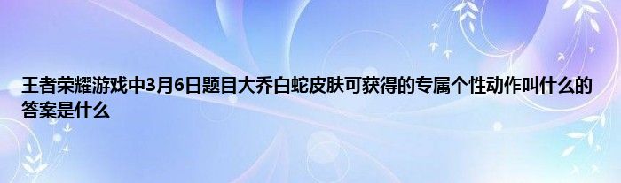 以上就是王者荣耀游戏中3月6日题目大乔白蛇皮肤可获得的专属个性动作叫什么的答案是什么的推荐,相信通过王者荣耀游戏中3月6日题目大乔白蛇皮肤可获得的专属个性动作叫什么的答案是什么这篇文章能帮到你,也欢迎对游戏很感兴趣小伙伴们一起来探讨。
