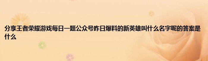 问题:公众号昨日爆料的新英雄叫什么名字呢?