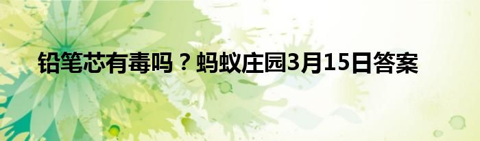蚂蚁庄园小客堂回答正确即可领取奖励,那么蚂蚁庄园2021年3月15日正确答案是什么呢?现在为大家分享蚂蚁庄园3月15日的正确答案,一起来了解下吧。铅笔芯含铅吗有毒吗 蚂蚁庄园3月15日的问题答案分享