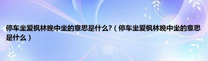 大家好,小科来为大家解答以上问题。停车坐爱枫林晚中坐的意思是什么?,停车坐爱枫林晚中坐的意思是什么很多人还不知道,现在让我们一起来看看吧!