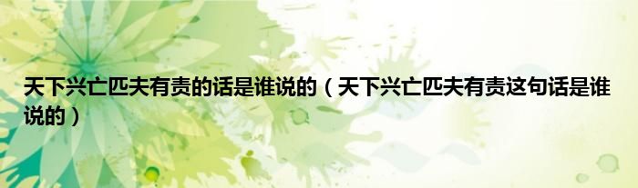 大家好,小科来为大家解答以上问题。天下兴亡匹夫有责的话是谁说的,天下兴亡匹夫有责这句话是谁说的很多人还不知道,现在让我们一起来看看吧!