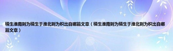 1、 “生在淮南是橘,生在淮北是橘”来自《晏子春秋》。