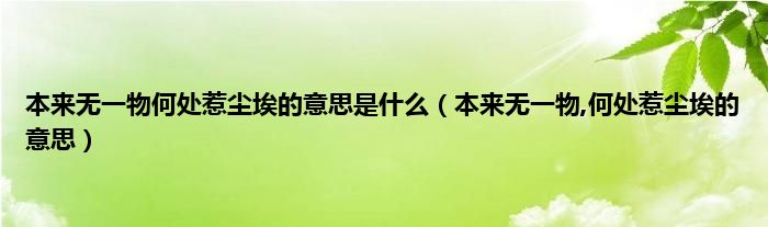 大家好,小科来为大家解答以上问题。本来无一物何处惹尘埃的意思是什么,本来无一物,何处惹尘埃的意思很多人还不知道,现在让我们一起来看看吧!
