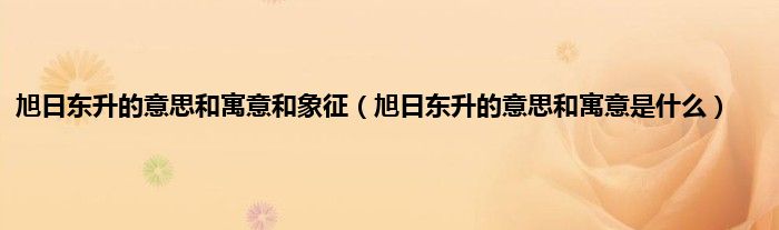 旭日东升的意思和寓意是什么:“答案是:太阳在早晨从东方升起。描述充满活力的天气。也是比喻艰难的日子过去了,好日子才刚刚到来。还有象征和平繁荣的解释。”