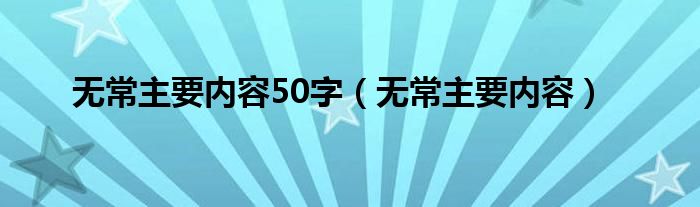 大家好,小科来为大家解答以上问题。无常主要内容50字,无常主要内容很多人还不知道,现在让我们一起来看看吧!