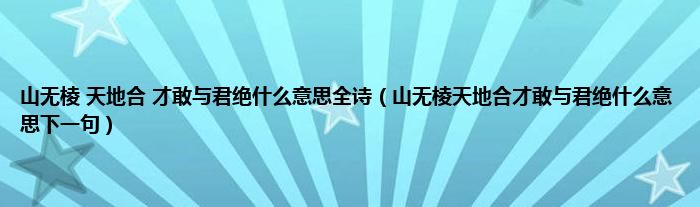 大家好,小科来为大家解答以上问题。山无棱 天地合 才敢与君绝什么意思全诗,山无棱天地合才敢与君绝什么意思下一句很多人还不知道,现在让我们一起来看看吧!