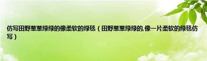 大家好,小科来为大家解答以上问题。仿写田野葱葱绿绿的像柔软的绿毯,田野葱葱绿绿的,像一片柔软的绿毯仿写很多人还不知道,现在让我们一起来看看吧!