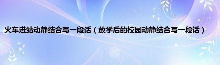 大家好,小科来为大家解答以上问题。火车进站动静结合写一段话,放学后的校园动静结合写一段话很多人还不知道,现在让我们一起来看看吧!