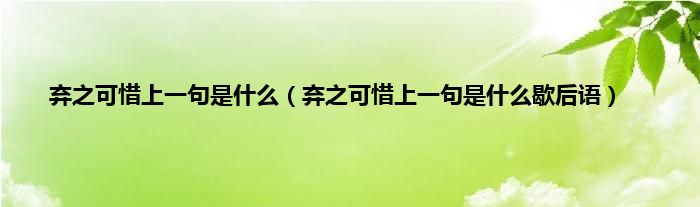 本文,弃之可惜上一句是什么,弃之可惜上一句是什么歇后语到此就分享完毕,希望对大家有所帮助。