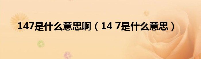 大家好,小科来为大家解答以上问题。147是什么意思啊,14 7是什么意思很多人还不知道,现在让我们一起来看看吧!