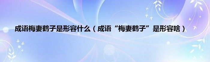 大家好,小科来为大家解答以上问题。成语梅妻鹤子是形容什么,成语“梅妻鹤子”是形容啥很多人还不知道,现在让我们一起来看看吧!