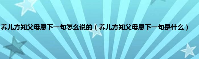 大家好,小科来为大家解答以上问题。养儿方知父母恩下一句怎么说的,养儿方知父母恩下一句是什么很多人还不知道,现在让我们一起来看看吧!
