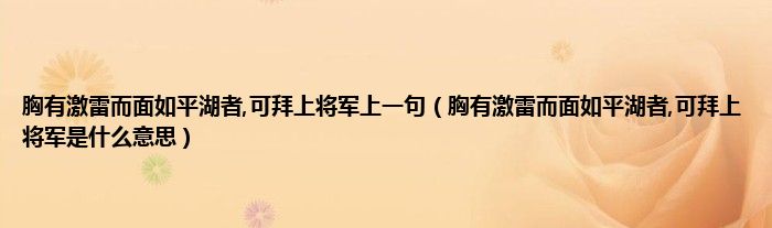 大家好,小科来为大家解答以上问题。胸有激雷而面如平湖者,可拜上将军上一句,胸有激雷而面如平湖者,可拜上将军是什么意思很多人还不知道,现在让我们一起来看看吧!
