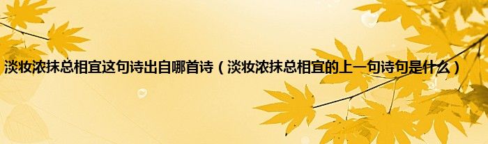 大家好,小科来为大家解答以上问题。淡妆浓抹总相宜这句诗出自哪首诗,淡妆浓抹总相宜的上一句诗句是什么很多人还不知道,现在让我们一起来看看吧!