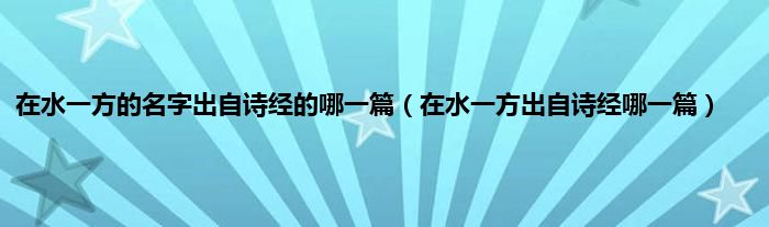 大家好,小科来为大家解答以上问题。在水一方的名字出自诗经的哪一篇,在水一方出自诗经哪一篇很多人还不知道,现在让我们一起来看看吧!