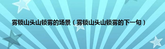 大家好,小科来为大家解答以上问题。雾锁山头山锁雾的场景,雾锁山头山锁雾的下一句很多人还不知道,现在让我们一起来看看吧!