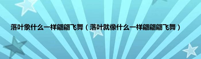 大家好,小科来为大家解答以上问题。落叶象什么一样翩翩飞舞,落叶就像什么一样翩翩翩飞舞很多人还不知道,现在让我们一起来看看吧!