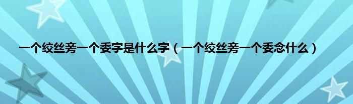 大家好,小科来为大家解答以上问题。一个绞丝旁一个委字是什么字,一个绞丝旁一个委念什么很多人还不知道,现在让我们一起来看看吧!