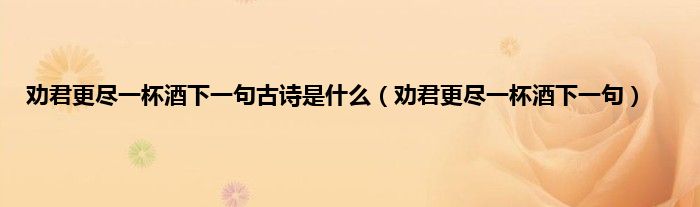 大家好,小科来为大家解答以上问题。劝君更尽一杯酒下一句古诗是什么,劝君更尽一杯酒下一句很多人还不知道,现在让我们一起来看看吧!