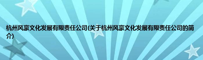 本文关于杭州风豪文化发展有限责任公司的简介就讲解完毕,希望对大家有所帮助。