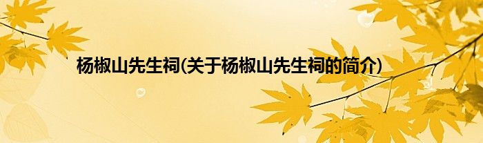 本文关于杨椒山先生祠的简介就讲解完毕,希望对大家有所帮助。