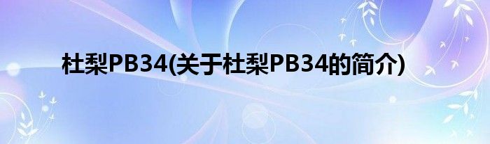 本文关于杜梨PB34的简介就讲解完毕,希望对大家有所帮助。