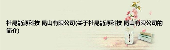 本文关于杜昆能源科技 昆山有限公司的简介就讲解完毕,希望对大家有所帮助。