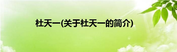 本文关于杜天一的简介就讲解完毕,希望对大家有所帮助。