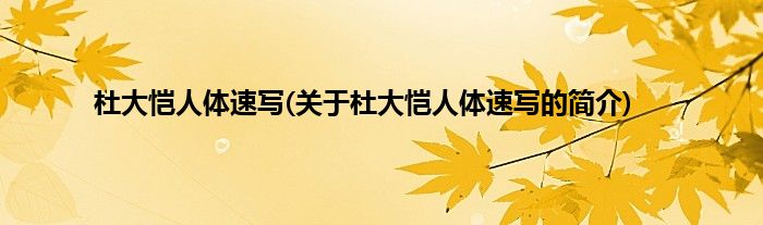 大家好,杜大恺人体速写,关于杜大恺人体速写的简介很多人还不知道,现在让我们一起来看看吧!